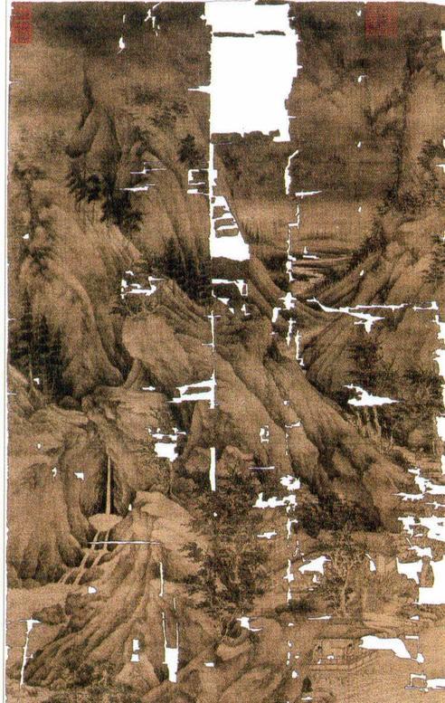 对于一张破损的古画,修复好之后,画面缺失的部分该不该接笔补全,业界一直存在不同观点的交锋,至今仍没有统一的标准来遵循。当下的普遍做法是,中国大陆博物馆的古书画修复师会倾向于在画意破损处进行补笔,而中国台湾、美国、日本等博物馆采取的做法是只有全色没有补笔。